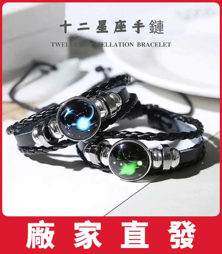 4分鐘前夜光手鍊十二星座皮繩手串學生潮人情侶飾品首飾女韓版時尚帥氣 - 【夜光手鍊十二星座 六入组】